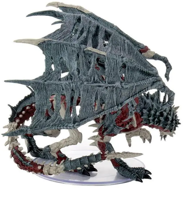 looming torn wings, and a skeletal face, this figure shows off the grotesque