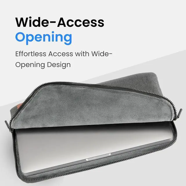 Its ash gray LuxeWeave textured fabric gives the sleeve a sleek, professional appearance, perfect for meetings, travel, or casual use. The wide-opening zipper with large, easy-grip pulls ensures frustration-free access, allowing you to quickly insert or remove your laptop whenever needed.
