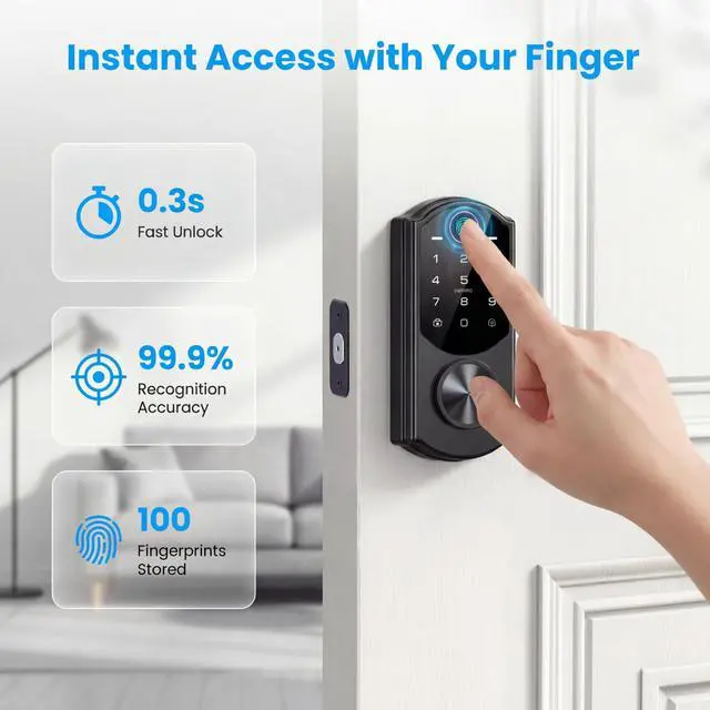 Advanced Touchscreen Biometric Access: This fingerprint door lock offers recognition in just 0.3 seconds with a 99.9% accuracy rate. Wifi door lock stores up to 100 fingerprints, providing instant, secure entry with a single tap