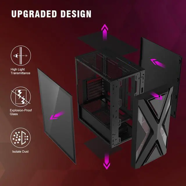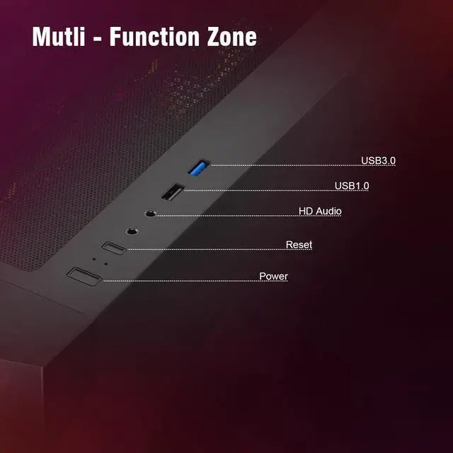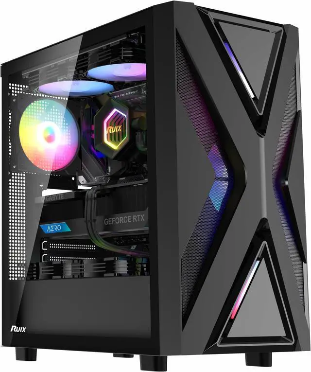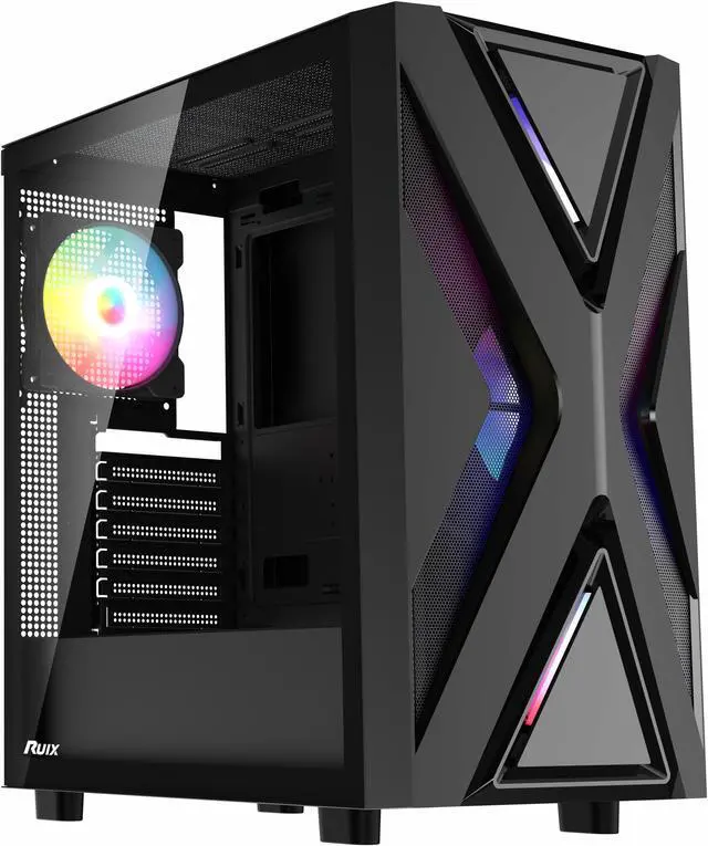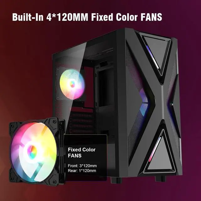 3 x Fixed Rainbow LED fans x front(Pre-installed), 1 x Fixed Rainbow LED fan x rear(Pre-installed), provide great cooling and dynamic cyber gaming atmosphere