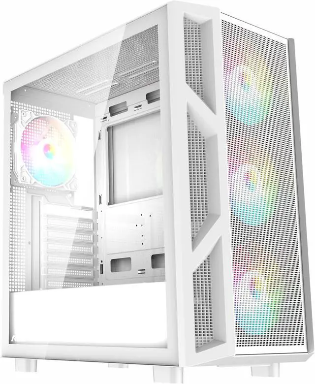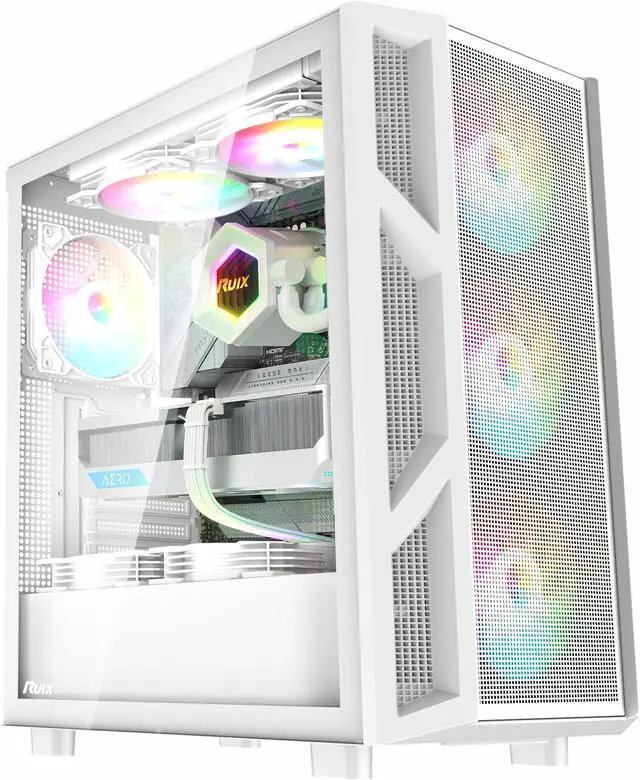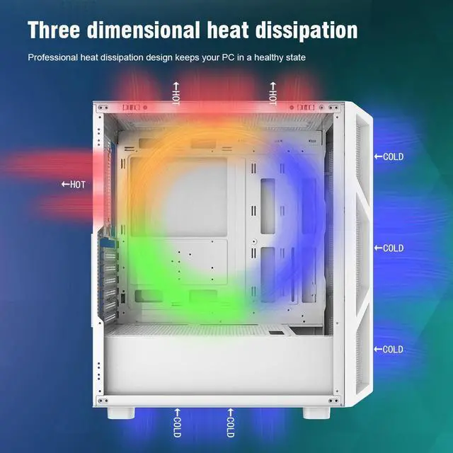 3 x Fixed Rainbow LED fans x front(Pre-installed), 1 x Fixed Rainbow LED fan x rear(Pre-installed), provide great cooling and dynamic cyber gaming atmosphere