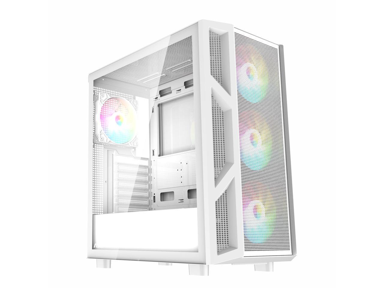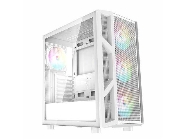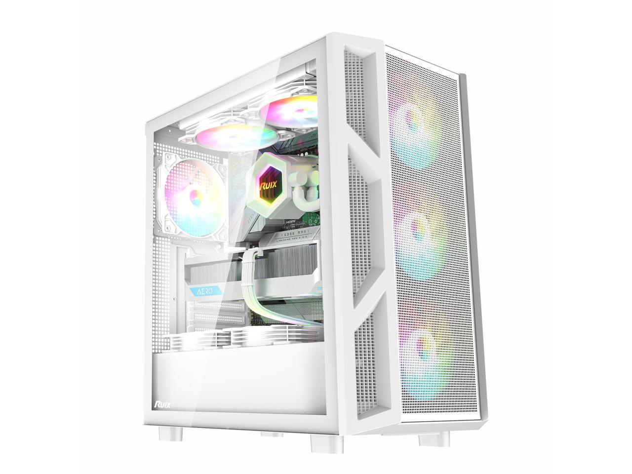 Ruix CV103 White Color USB3.0 Tempered Glass Side Panel Mid Tower ATX Gaming Computer Case With Fixed Rainbow Fans X4 Pre-installed With Mesh