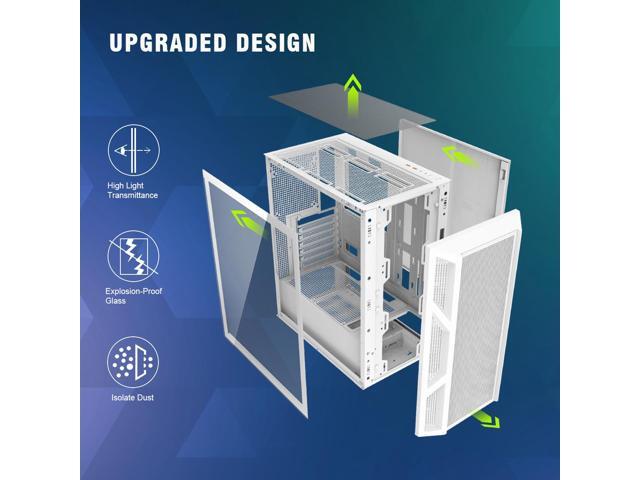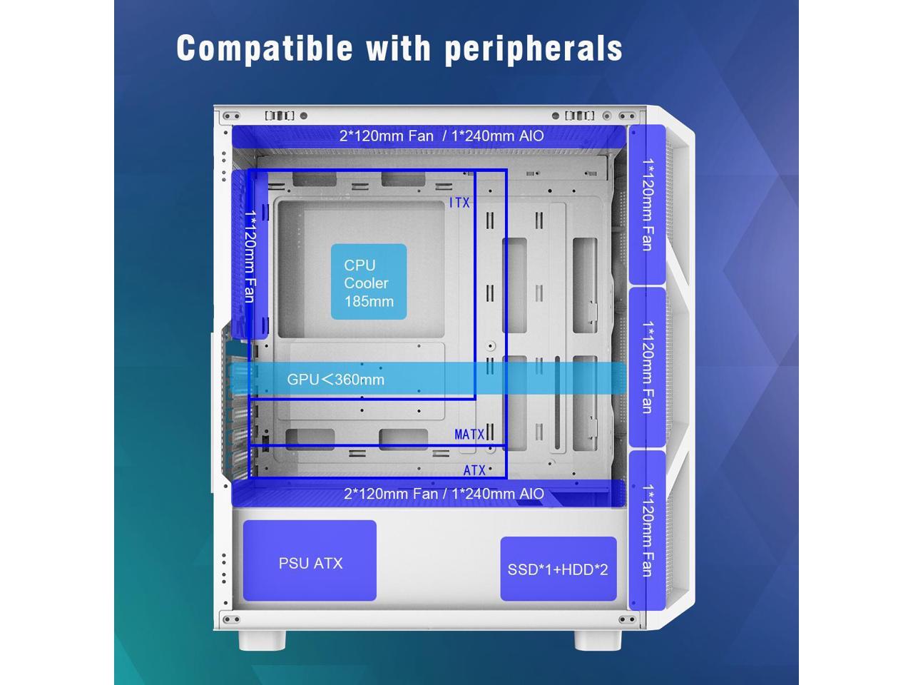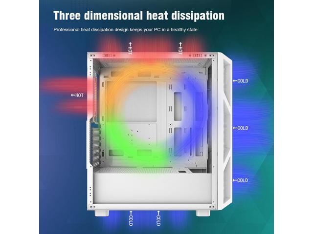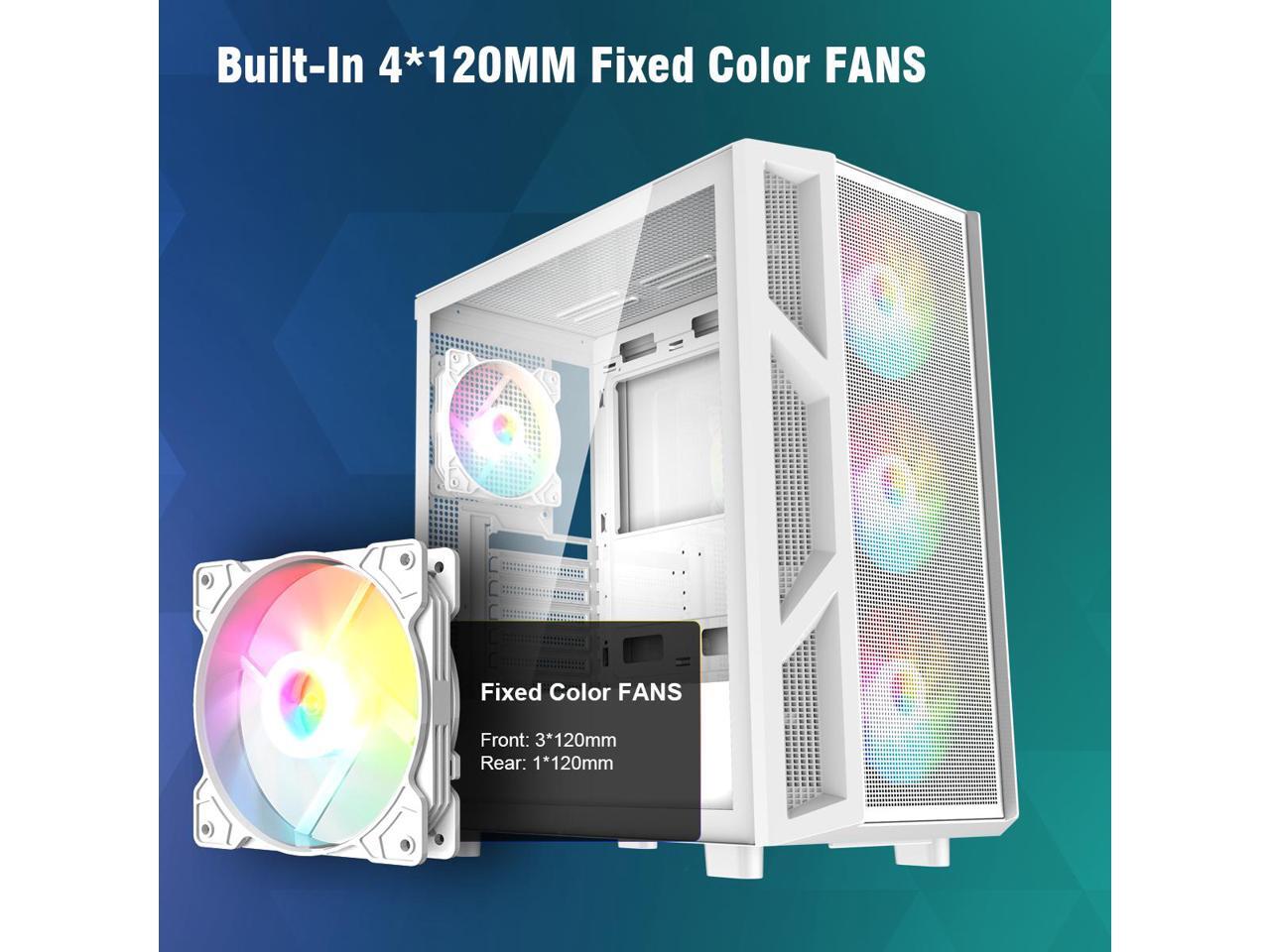 - 3 x Fixed Rainbow LED fans x front(Pre-installed) , 1 x Fixed Rainbow LED fan x rear(Pre-installed), provide great cooling and dynamic cyber gaming atmosphere