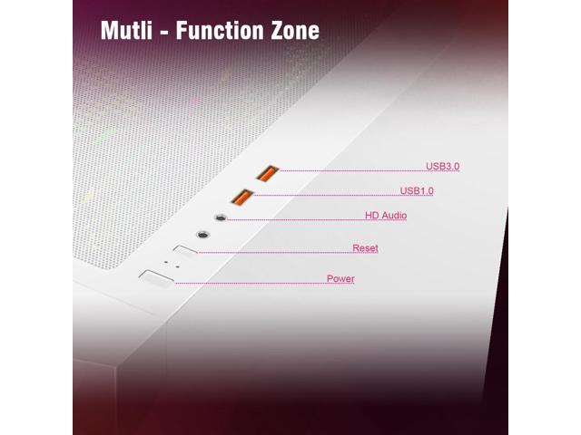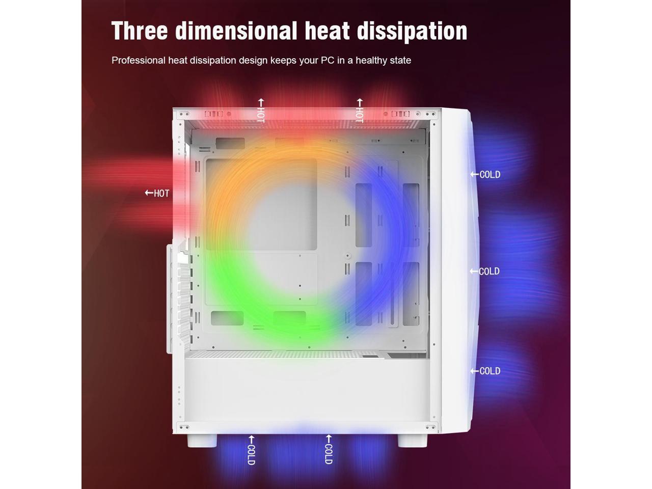 - 3 x Fixed Rainbow LED fans x front(Pre-installed) , 1 x Fixed Rainbow LED fan x rear(Pre-installed), provide great cooling and dynamic cyber gaming atmosphere