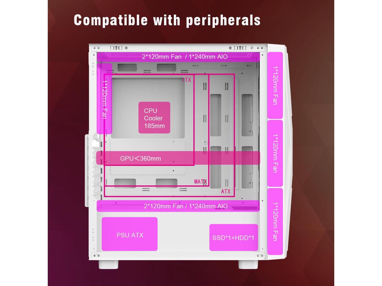 - Support up to 185mm CPU cooler