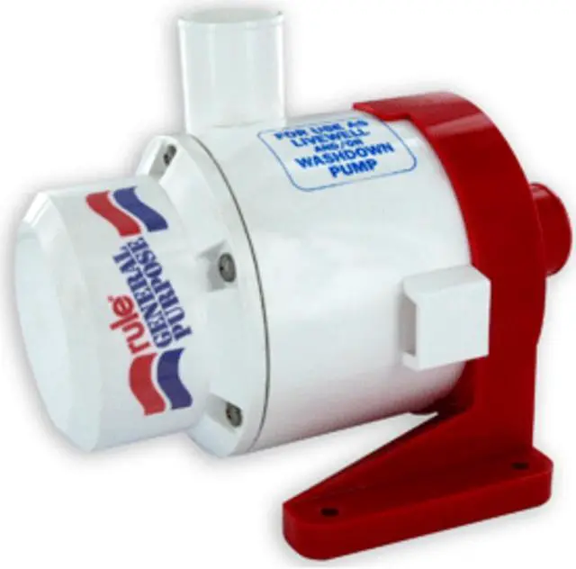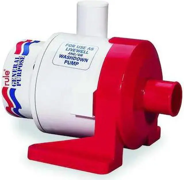 Livewell Pump, Compatible Media Type Water, Horsepower 33/1000 hp, Maximum Feet of Head 25 ft, Nameplate Voltage 12V DC, Maximum Flow Rate @ 1 Foot of Head 3, 800 gph, Amps 15.5 A, Compatible Discharge Pipe Size 1 1/2 in, Electrical Connection Type Hardwired, Includes Polyacetal Plastic Housing and Stand Construction with Stainless Steel Shaft, Permanent Magnet 12VDC Motor, PTFE Shaft Seal, Overall Height 5.25 in, Priming Manual. This item has been restricted from sale in the following state (s): []