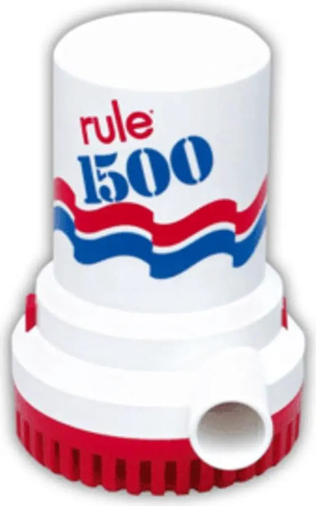 RULE 1500 GPH NON AUTOMATIC BILGE PUMP 02Rule 1500High pumping capacity and reliability at a lower cost. The Rule 1500 offers more pumping capacity and more exclusive design features than any comparable competitive pump. 1-1/8 (28.6mm) discharge outlet. 12 Volts DC unless noted.Features:Fully SubmersibleEasy clean snap lock strainerSilent and vibrationless operationAnti-airlock protetionCompact, efficient long life motorIgnition protectedNo burn-out when run dryRust and corrosion protectionUsed by leading boatbuilders worldwideMarine grade blocked wiring