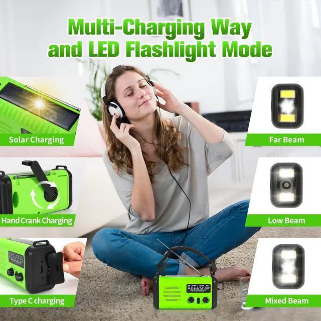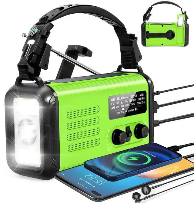 - This solar radio, crank radio solar charging, hand crank flashlight and power bank. Necessary for emergencies - built-in rechargeable battery with 20000MAh for charging the mobile phone and tablet in an emergency. The weather radio has USB C and USB A charger port.