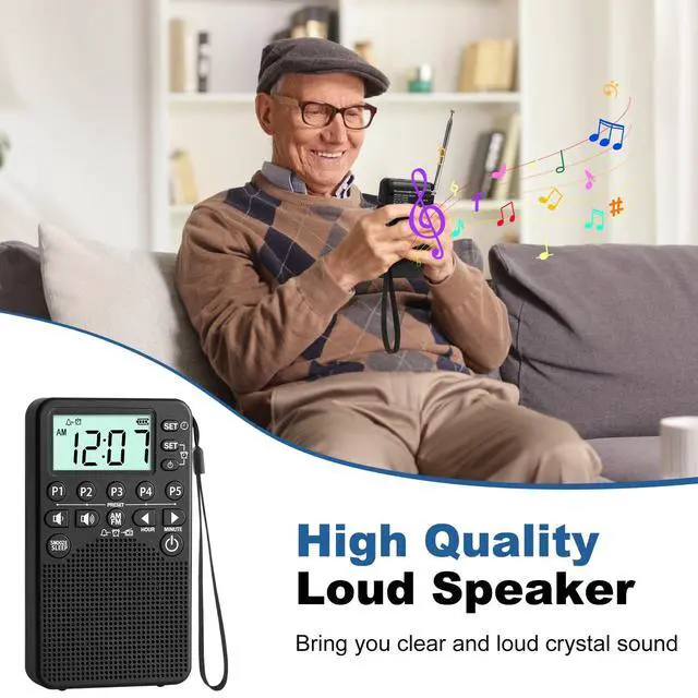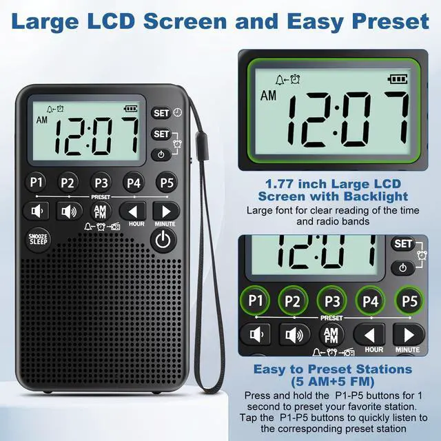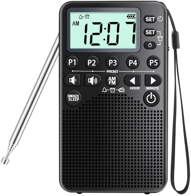 Battery Operated Portable Pocket AM/FM Radio | Digital Tuning, Loud Speaker, Excellent Reception | Portable Emergency & Outdoor Radio with LCD Screen, Alarm Clock, Preset, Sleep Timer, Snooze