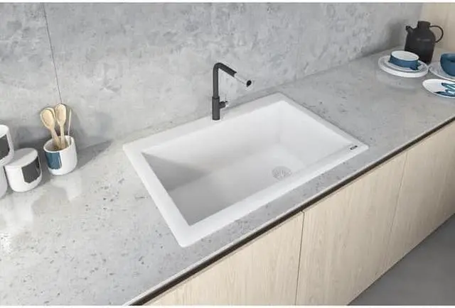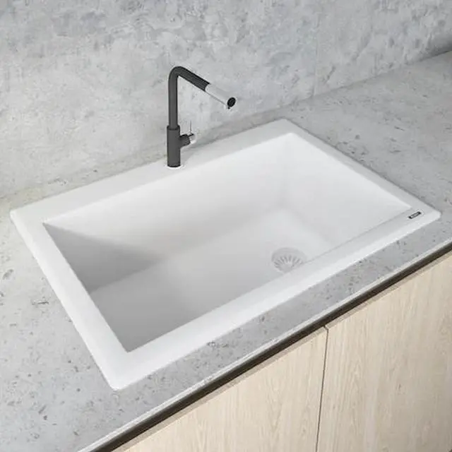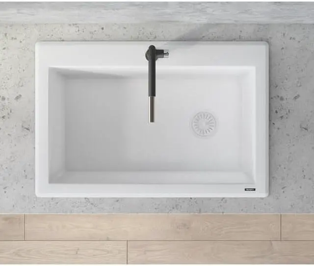 RUVATI RVG1033WH 33"x22" Dual-Mnt Granite Composite Sgl Bowl Kitchen Sink, Wht