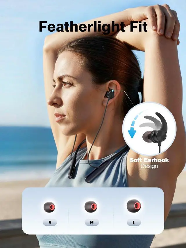 Designed for Your Active Lifestyle: WH05 Neckband Headphones stay secure during intense workouts with a lightweight neckband, comfortable ear hooks, and 6 silicone eartips for a perfect fit
