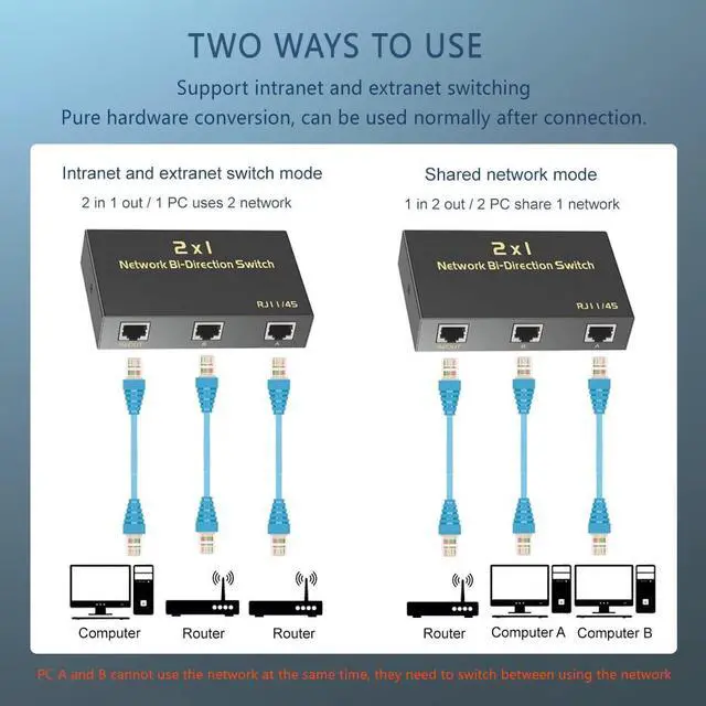 RJ45 Switch 2 port 1 in 2 out / 2 in 1 out