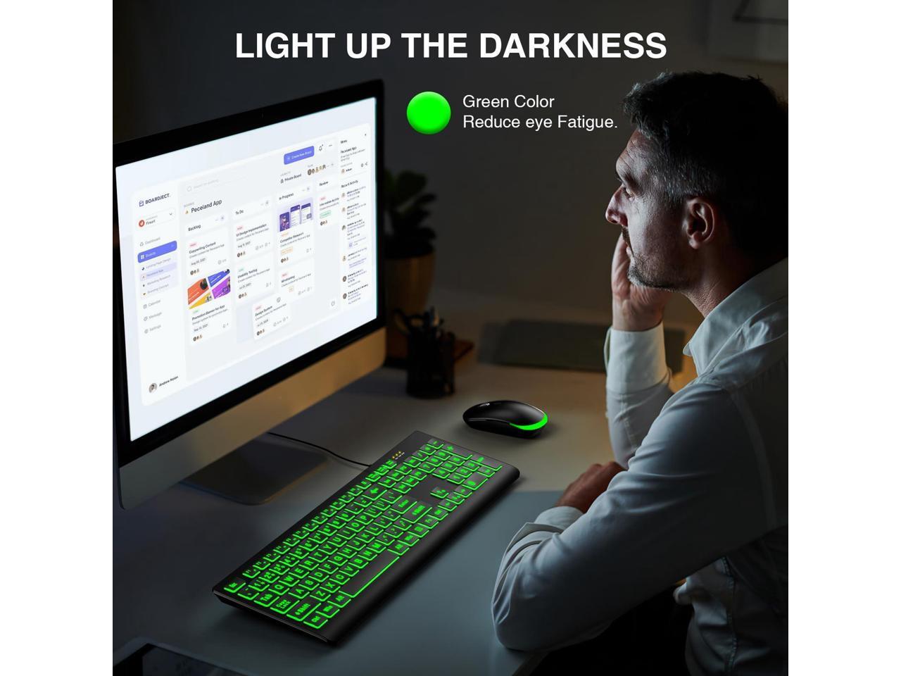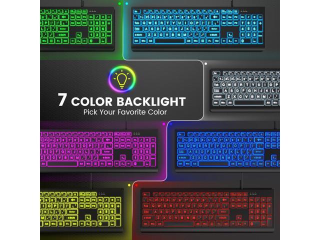 - [7 Backlights and 4 Modes]The Backlit keyboard has 8 levels of brightness, 7 different colors, and 4 backlight modes. Backlit can choose to turn on/off and adjust brightness, making it more convenient to type in low-light environments