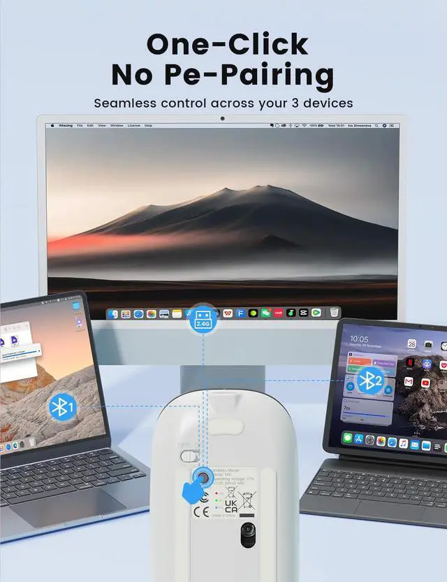 Yes! Triple-Mode (BT 5.0 + 2.4G) lets you pair up to 3 devices (MacBook, iPad, Laptop). Switch between them with one click—the perfect companion for your silver workspace.