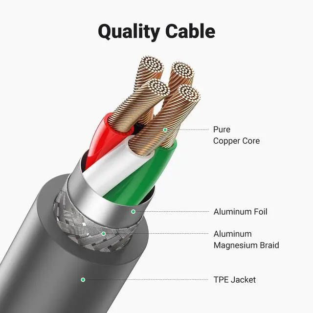 • Quality: Copper Core and Shield Design for Stable Signal Transmission