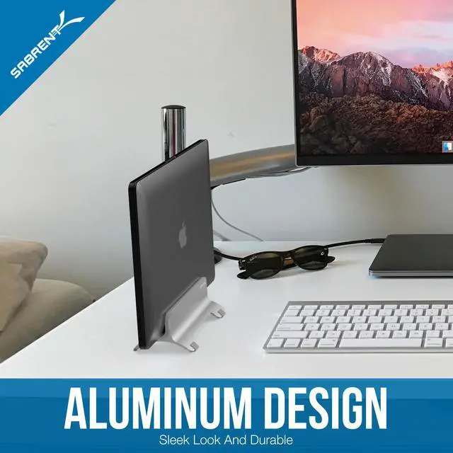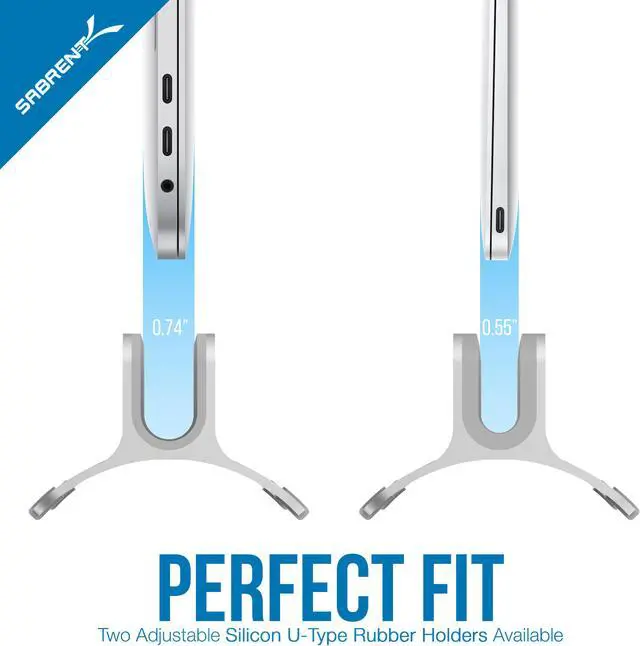 PERFECT FIT - Two Adjustable silicon U-Type Rubber Holders Available.Compatible with all current Macbook, Macbook Air, Macbook Pro And Laptop Between 0.55'' to 0.74''. ALUMINUM DESIGN Sleek Look And Durable .CLUTTER FREE - Simple And Elegant Design, Keeps Your Desk Neat And Organized.