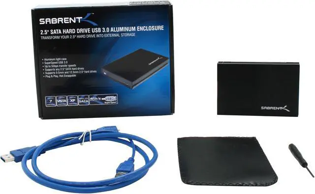 | Package Contents | Sabrent EC-EC-TBBK Hard Drive Enclosure USB 3.0 cable (Data and Power) Screw set with screw driver |