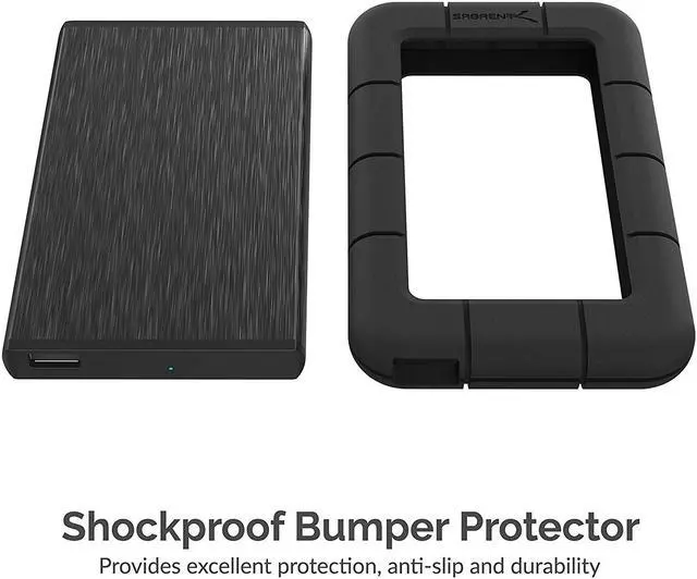 Constructed of durable aluminum material, the enclosure not only looks stylish but also provides effective heat dissipation to protect your drive from overheating. The bumper warps around the aluminum enclosure, providing added protection against drops, bumps and shocks.