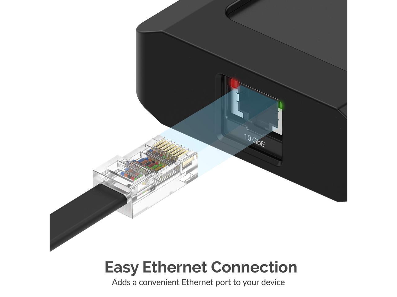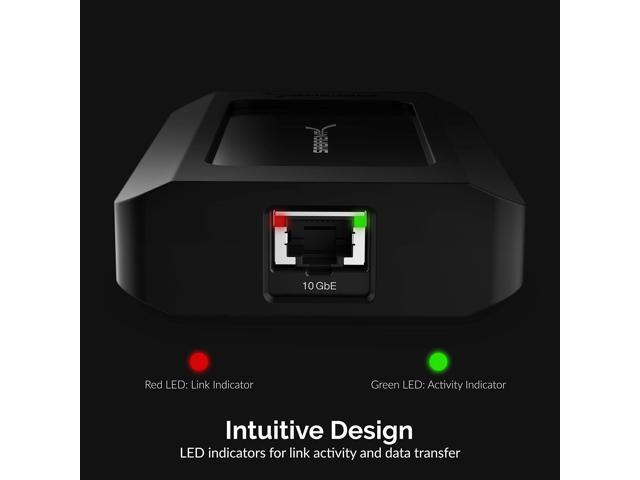 Bus-powered, no need for additional external adapters.10G speed and full backward compatibility for: 5G / 2.5G / 1000M / 100M / 10M bps Base-T.