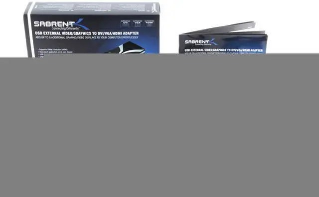 | Features | The Sabrent USB-1612 USB Display Adapter is the easiest and most effective way to add additional monitors to a PC or Intel-based MAC, desktop or notebook. You can add any LCD, TV, Projector, even old CRTs, via DVI, HDMI, or VGA. After installing the software, simply insert the USB cable into your computer and you can add up to 6 of these units to one computer (One Display Adapter is require for each added Display). The software is barely noticeable and uses very little computing power to operate. Plus, by using USB 2.0 technology, there is no need to open the computer, or struggle with compatibility issues related to a second VGA card. Simply by adjusting your Display Settings, you can set your monitors to mirror one another or function as one large desktop space, where each monitor can display a different application. |