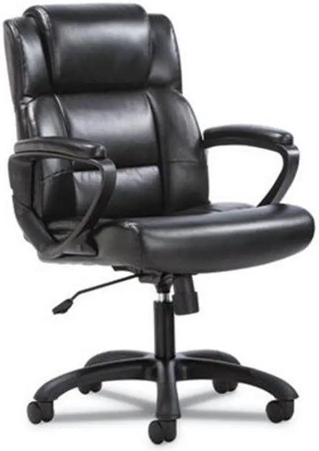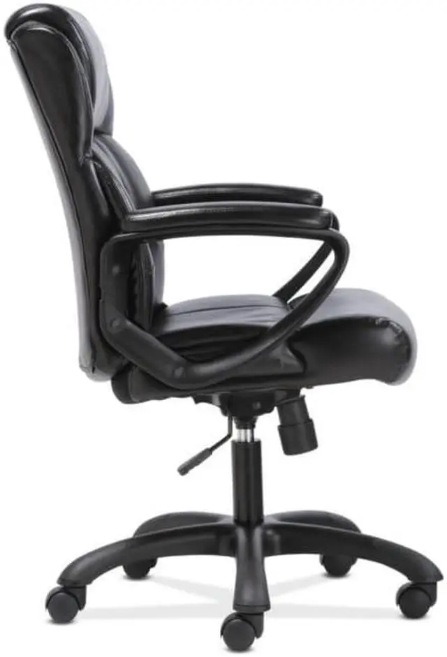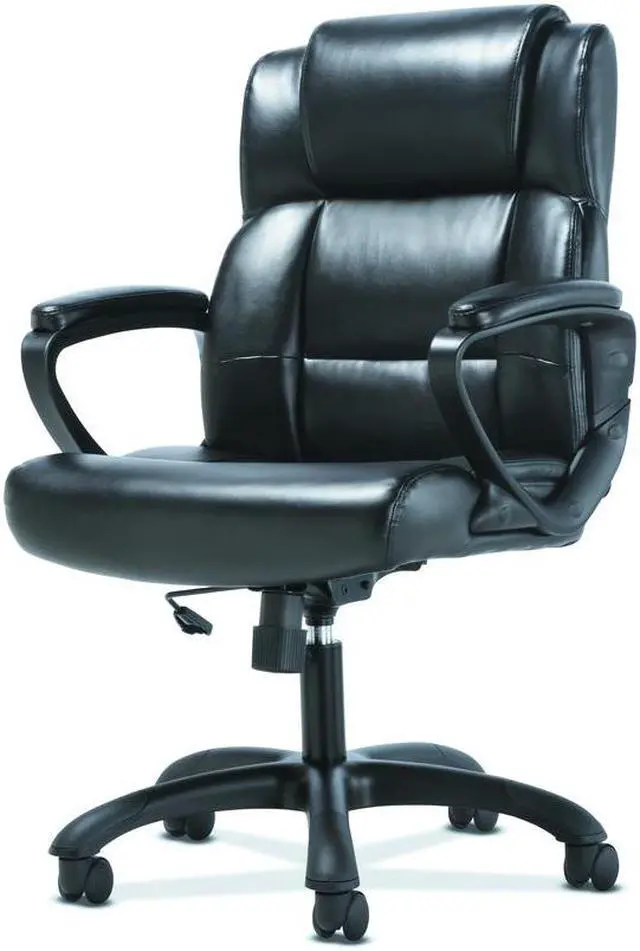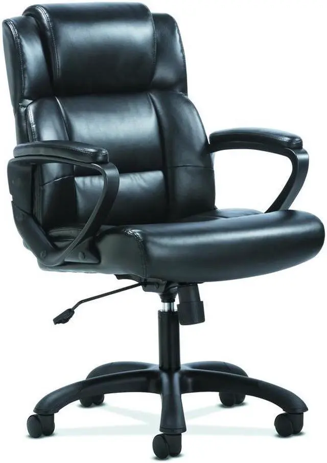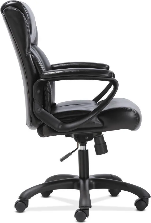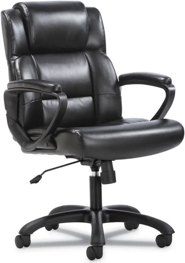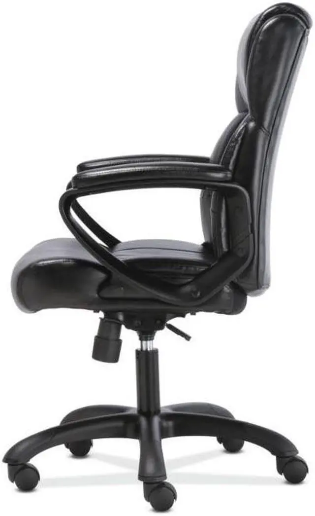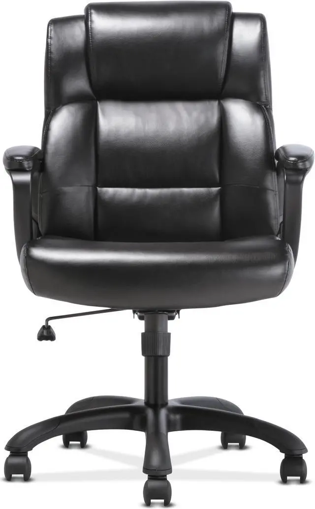 The office chair features luxurious sofThread leather for an upscale look and feel, making it a smart and stylish solution for any application. It offers simple and intuitive controls such as pneumatic seat height adjustment, 360-degree swivel, tilt tension and tilt lock for added customizability and comfort. The contemporary tapered arms add to the modern appeal. The comfort, stylish look, and price point of this chair make it a perfect addition to the office whether at work or at home. Recommended Application Area(s): Executive & Management; General Office & Task; Seat Color: Black; Back Color: Black; Color Family: Black.