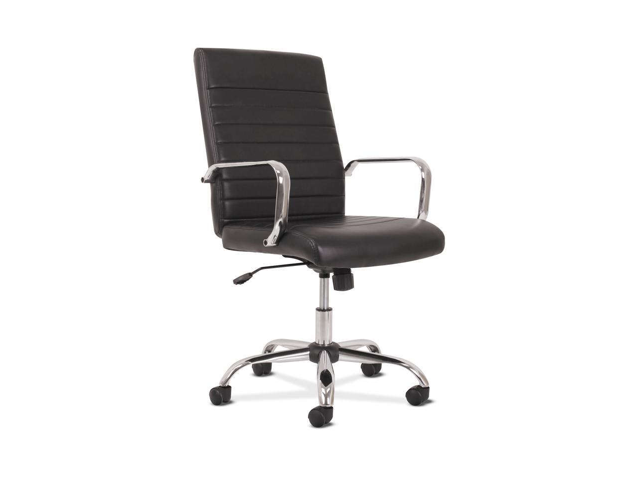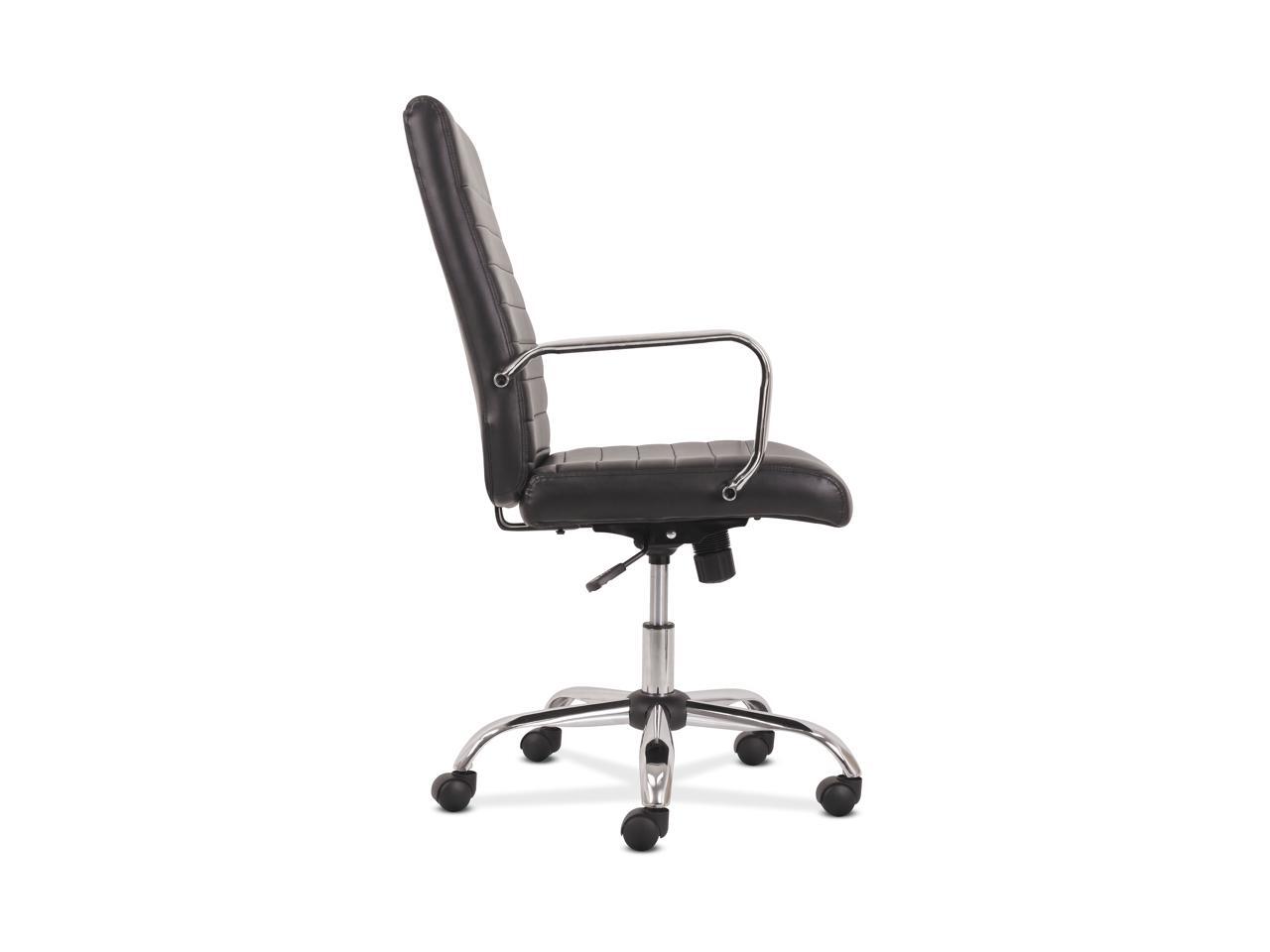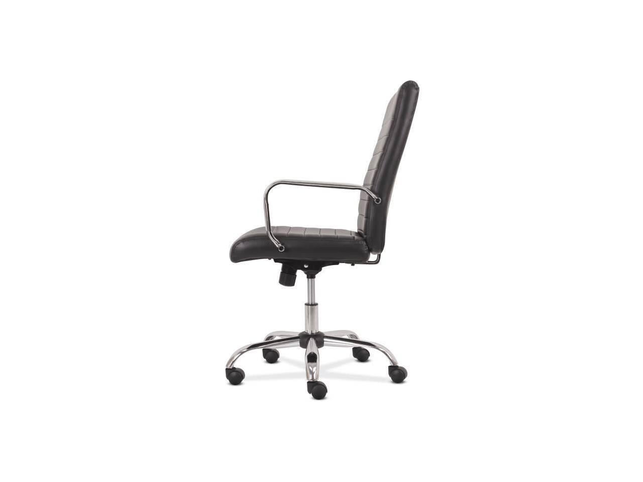 Sadie Executive Computer Chair- Fixed Arm for Office Desk, Black Leather with Chrome Accents (HVST511) - OEM