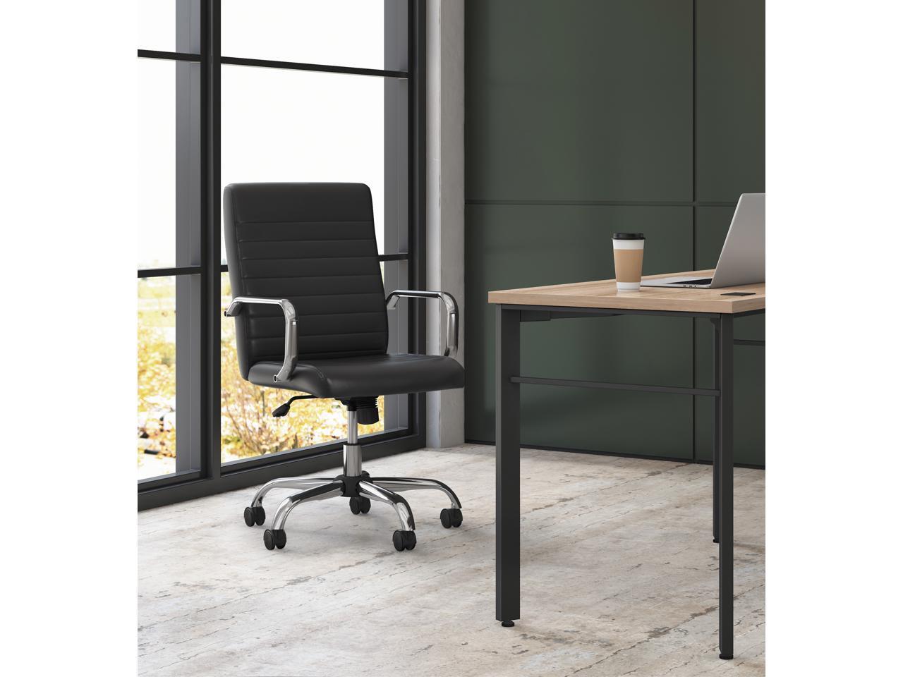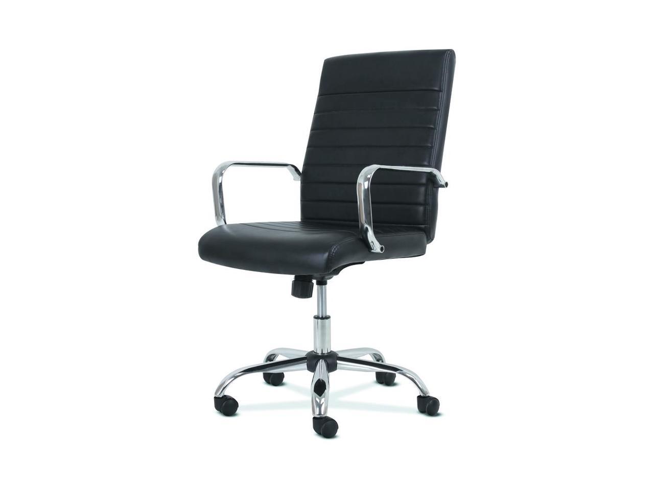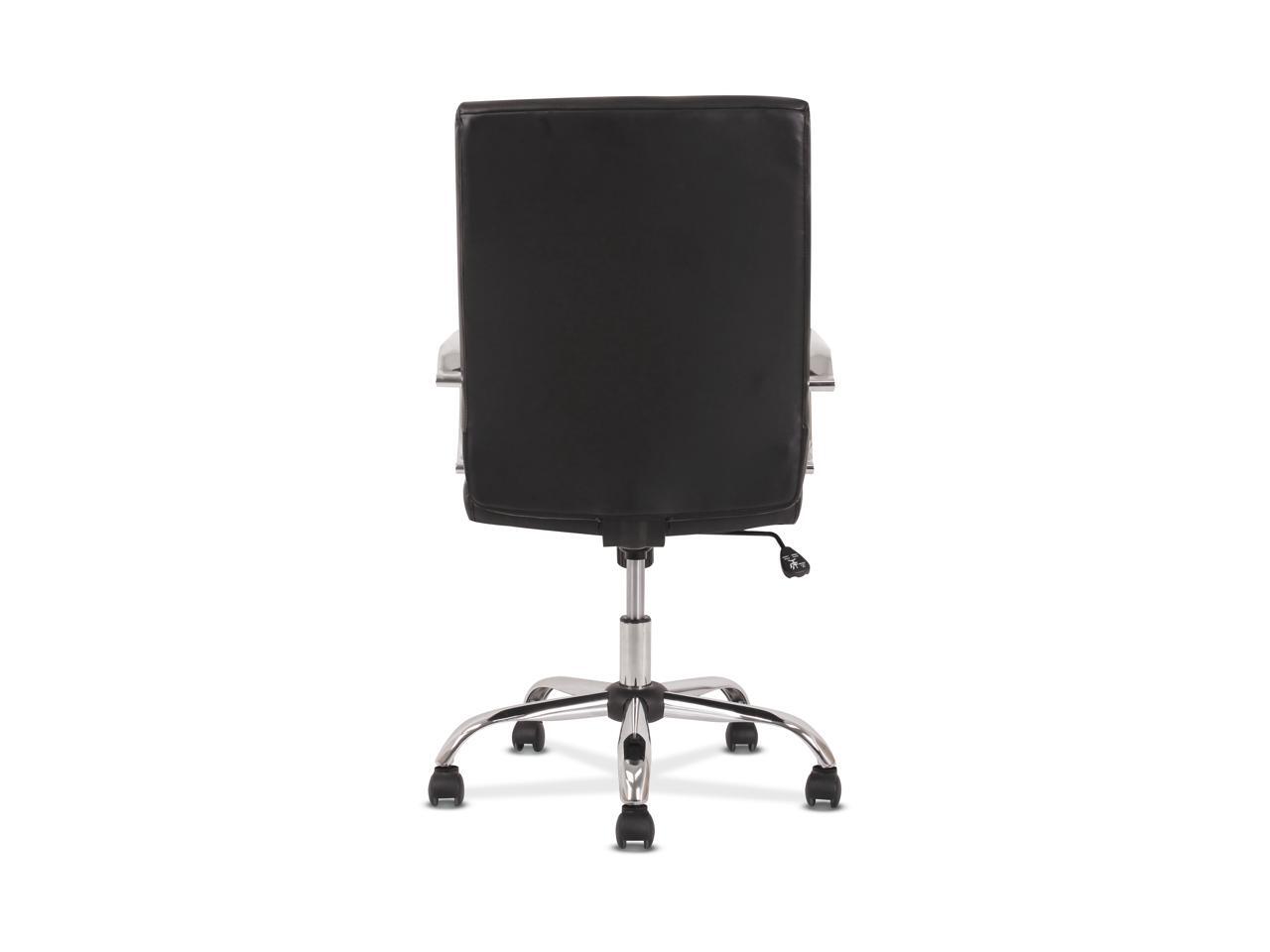 Sadie Executive Computer Chair- Fixed Arm for Office Desk, Black Leather with Chrome Accents (HVST511) - OEM