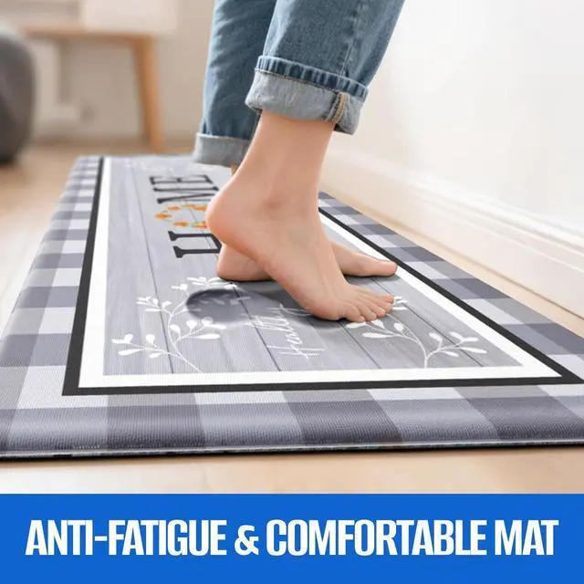 Comfortable Anti-Fatigue Mat: With a thickness of 0.4 inches, SofterCharm kitchen mat provides the right cushioning to support your feet during long periods of standing. When youre prepping meals, it eases muscle and joint strain, keeping you comfortable