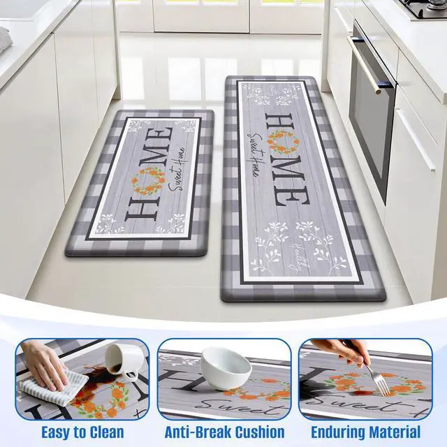 2-Size Versatility: SofterCharm kitchen rugs comes in a two-piece set, with sizes 17.3 x 30 and 17.3 x 47.2 . It is perfect for kitchen, office, or laundry room. Provides comfortable support while standing during cooking, cleaning, and working