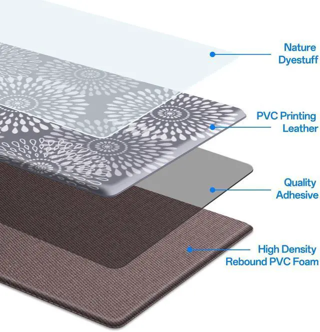 Versatility:The classic pattern and color compliment any kitchen decor;The blend of function and fashion make the foam mats perfect for home or commercial use;The PVC foam kitchen floor mat may be used on multiple surfaces (tile, wood, ceramic, marble, etc)