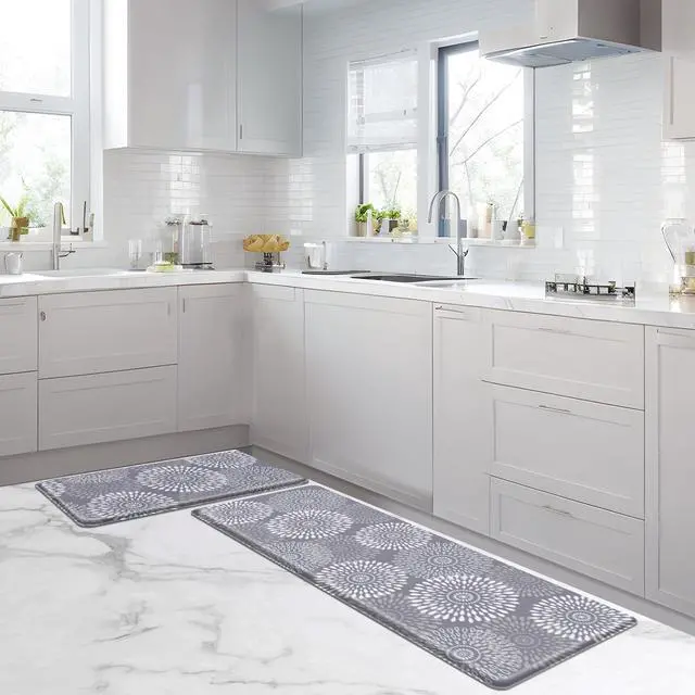 Premium Material:Kitchen rugs sets of 2 are made from high-quality,premium PVC materials that is scratch and fade resistant and withstand heavy traffic, ensuring long-lasting performance while being friendly on the environment