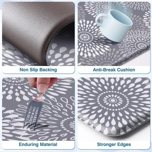 Anti Fatigue Kitchen Mats for Floor:LuxStep kitchen rugs help provide a comfortable space,0.40" thickness provides support to help relieve pressure on your feet;the floor mat non slip washable also has a slow-rebound feature to protect dishes from breaking if dropped while you are cleaning or cooking