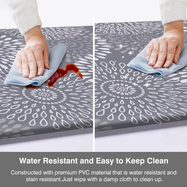 Kitchen Accessories:This kitchen mat keeps the kitchen clean very well;It is constructed with premium PVC material that is water resistant and stain resistant;kitchen mat is designed to be a kitchen helper saving your time and energy,just wipe with a damp cloth to clean up,not machine washable