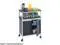 Sleek cart is designed for use in lobbies, conference rooms or boardrooms. Top shelf holds 25 lb. Melamine top is 33-3/8" wide x 21-5/8" deep with 1-1/2" high chrome wire rails to prevent items from falling off in transport. Spacious locking cabinet has one adjustable 29" wide x 16-1/2" deep steel shelf. Open storage area is 8-5/8" high. Shelf in cabinet and on top of cabinet holds 50 lb. Frame and cabinet are made of steel. Top and doors are made of melamine. Easily roll cart on four 3-1/2" casters (two locking).