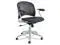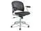 This task chair offers a contoured, round back provides lumbar support while the perforated back gives it breathability to ensure comfort. Black upholstered seat is accented with a silver frame and adjustable arms allowing indiviual users to adjust to their perferred comfort level. Five-star base with casters for mobility.
