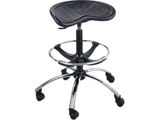Safco 6660BL Sit-Star Stool with Footring & Caster, 27”-36h Seat, Black/Chrome