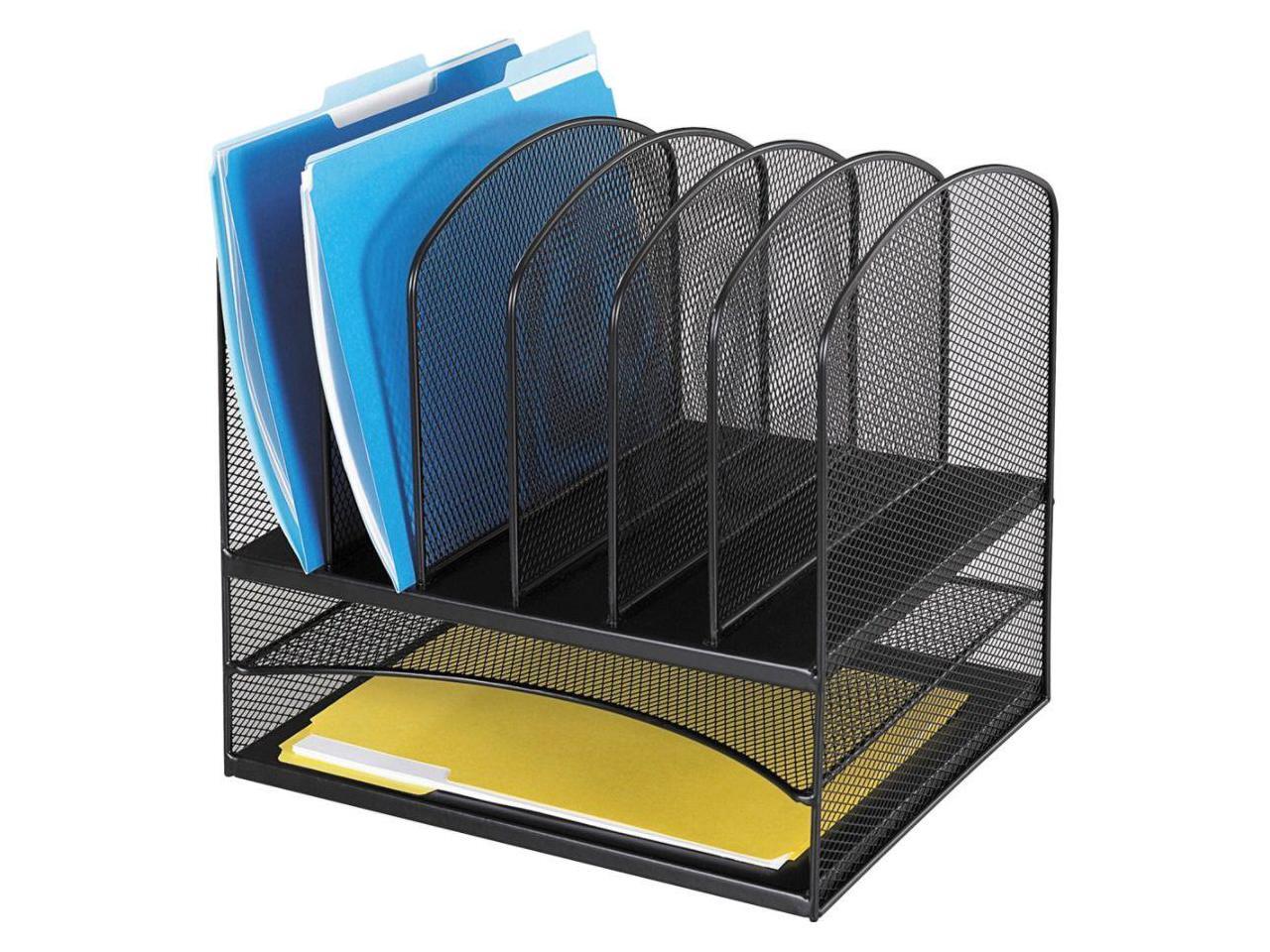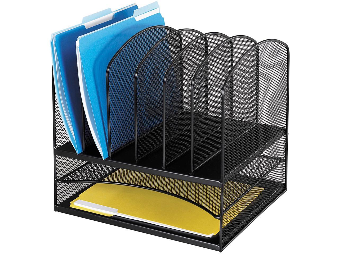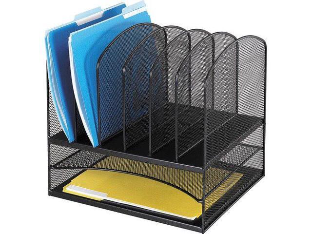 Mesh Desk Organizer, Eight Sections, Steel, 13 1/2 X 11 3/8 X 13, Black