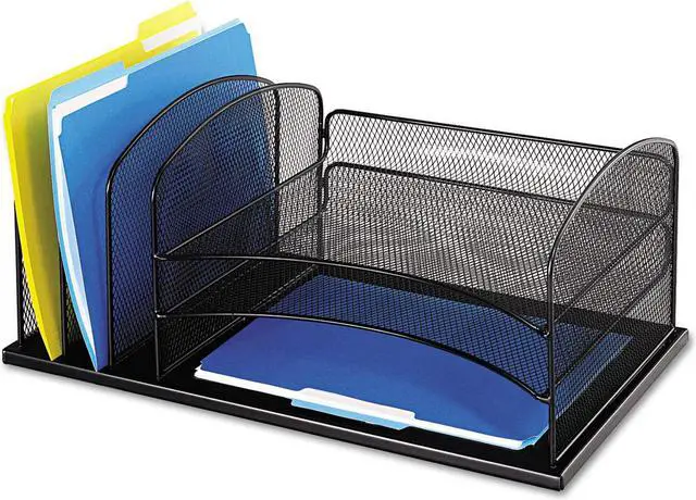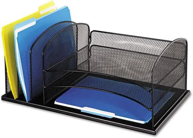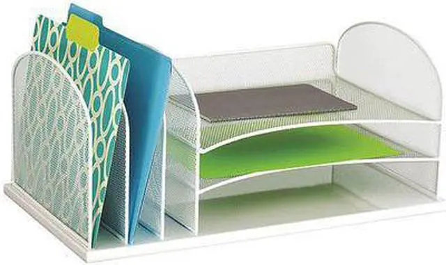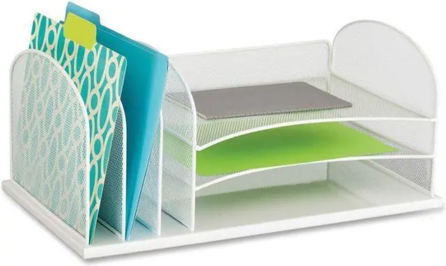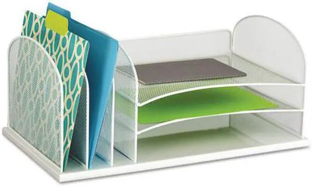 • Three large-capacity 2" wide upright sections for organizing file folders, binders, books and more.