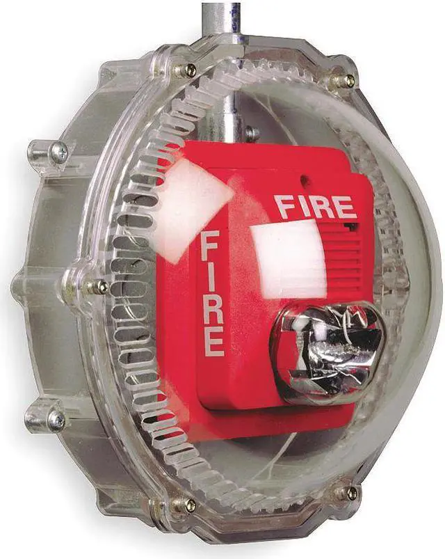 Audible and Strobe Guard, Open Back, Indoor, Color Clear, Material Polycarbonate, Mounting Surface, Width 9 3/8 in, Depth 4 1/2 in, Height 8 1/2 in, Diameter 9 3/8 in, For Use With Fire Speakers/Strobes, Operating Temp. -40 Degrees to 250 Degrees F, Standards ADA Compliant, UL/cUL Listed, Features 3 Year Guarantee, Includes Mounting Hardware. This item has been restricted from sale in the following state (s): []