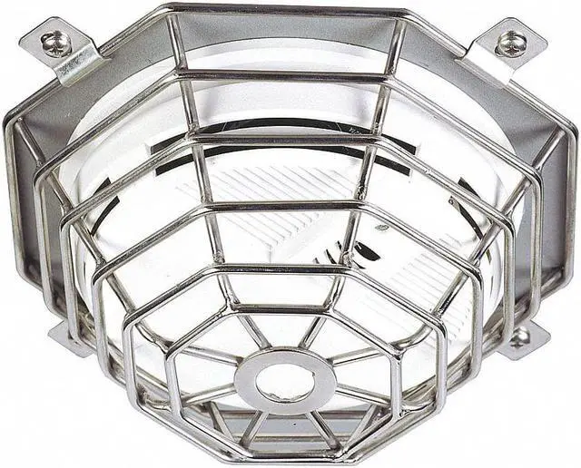 Smoke Detector Guard, Open Back, Indoor, Color Silver, Material Stainless Steel, Mounting Flush, Width 7 in, Depth 3 1/4 in, Height 7 in, Diameter 7 3/4 in, For Use With Smoke Detectors, Operating Temp. -40 Degrees to 250 Degrees F, Standards UL, Features Guard Helps Protect Against Vandalism and Damage, Includes Mounting Hardware. This item has been restricted from sale in the following state (s): []