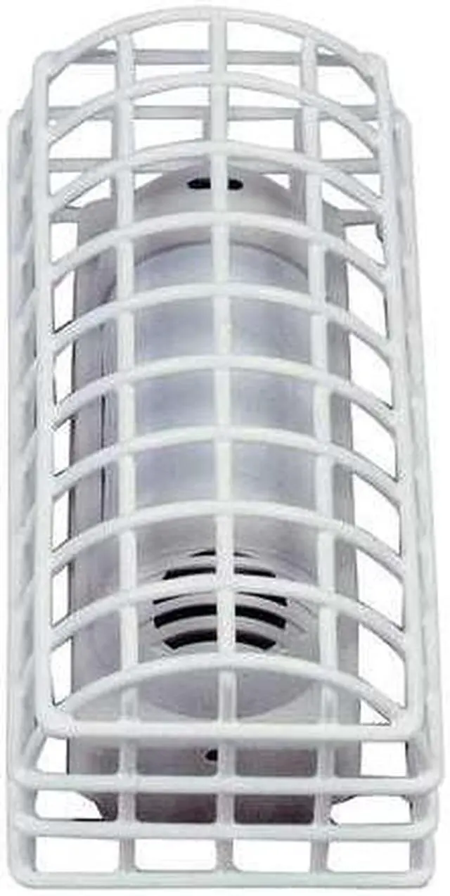 Motion Detector Guard, Open Back, Indoor, Outdoor, Color White, Material Steel, Mounting Surface, Width 4 in, Depth 3 3/4 in, Height 8 3/4 in, For Use With Motion Detectors, Operating Temp. -40 Degrees to 250 Degrees F, Features Guard Helps Protect Against Vandalism and Damage, Includes Mounting Hardware. This item has been restricted from sale in the following state (s): []