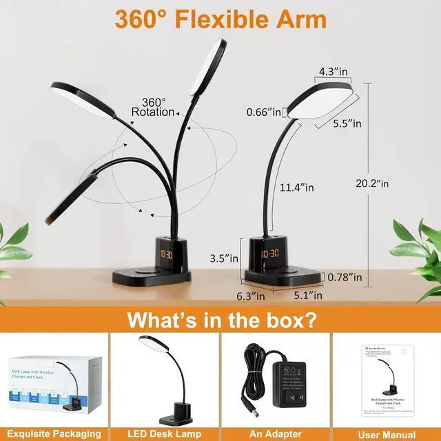 Sailstar upgraded LED desk lamp with built-in wireless charging, clock, and sleep night light.