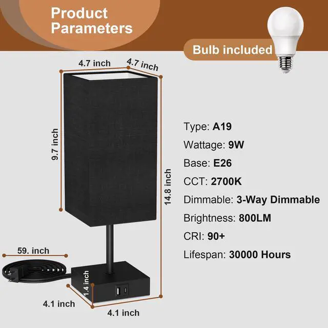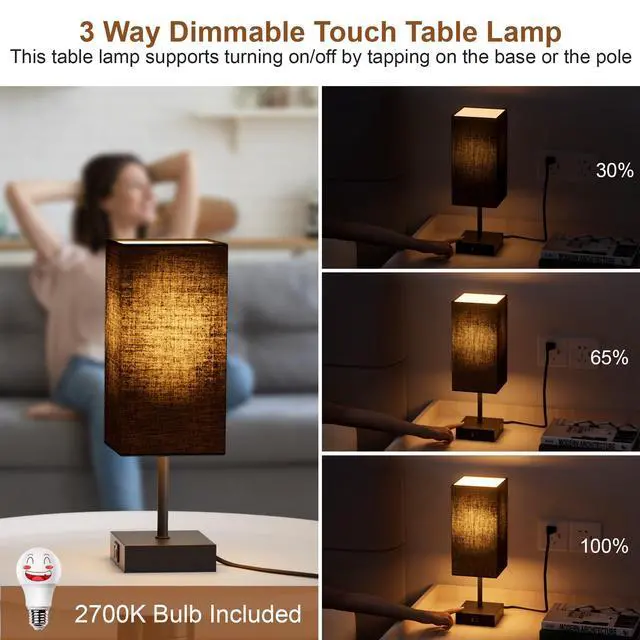 MINIMALIST BEDROOM LAMP: Modern style lamp for bedroom features: black metal base and a square lampshade, which can create a cozy and relaxing atmosphere in your house. Black flax fabric lampshade will make the light soft and protect your eyes to create a comfortable atmosphere. Touch Table Lamp can decor your home, living room, guest room, study reading room, kids room, etc.