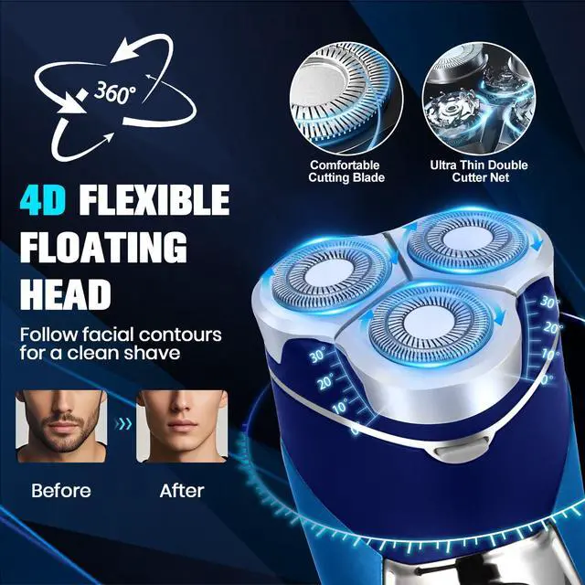 4D Floating head shavers for menThe electric shavers for men face closely adhere to facial curves. With sharp and comfortable double-layer blades, they can efficiently shave all kinds of beards. The shaving process is smooth and fluent, effectively reducing skin discomfort