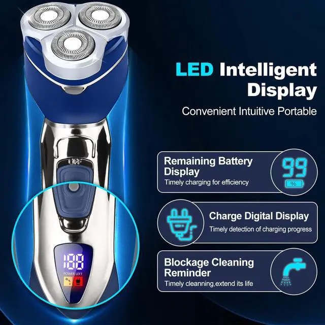 LED Digital Display FunctionThe razors for men electric shaver shows the remaining battery level for easy power control, displays the charging status to avoid interruption,and presents a cleaning reminder according to usage frequency,ensuring the mens shaver stays in perfect performance all the time