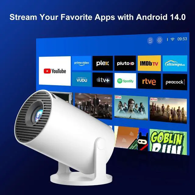 ![Alt view image 7 of 7 - [ Projector 4k/8K & Android 14.0 ] Mini Smart Projector, Wifi 6 and Bluetooth 5.4, Short Throw, Built in Apps, Auto Keystone, Outdoor Movie Projector Portable HY300Pro+ (2026 Upgrade)](https://c1.neweggimages.com/productimage/nb640/C57ZD2603100MELZ30E.jpg)