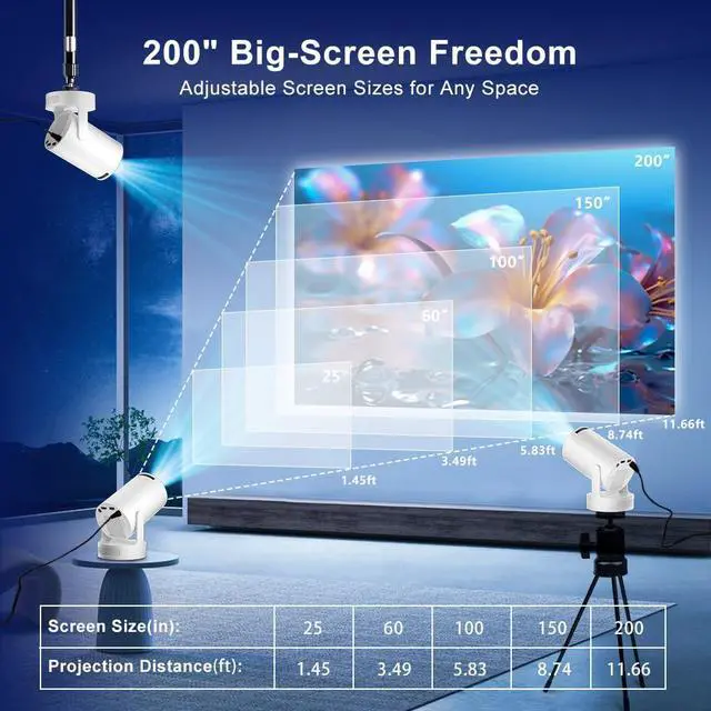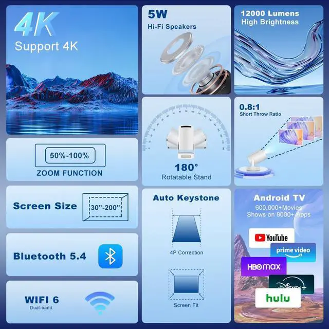 ![Alt view image 4 of 7 - Mini Projector with Wifi and Bluetooth 5.4, Short Throw Projector 4K, Built-in Apps, 250 ANSI Lumens, Auto Keystone Correction, Smart Projector for Home Outdoor Movies [ 2026 Upgrade, White ]](https://c1.neweggimages.com/productimage/nb640/C57ZD2603100MSXVVB5.jpg)