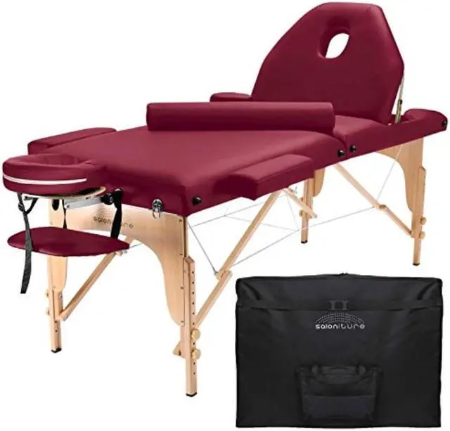 It is constructed with an adjustable headrest and removable winged armrests for additional customizable comfort. Combining affordable value with performance, the Saloniture portable all-inclusive folding massage table package offers a complete massage solution. Includes a professional grade massage table, deluxe adjustable headrest, armrests, and a heavy-duty, nylon carry case with pockets.