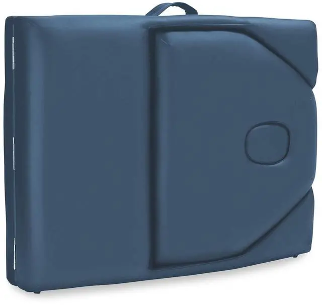 This Saloniture portable massage table combines luxurious comfort in a convenient, fold-and-carry design ideal for both certified massage therapists as well as at-home bodywork enthusiasts. The table features professional-grade craftsmanship, including a sturdy hardwood frame along with double tension knobs on each leg for extra stability. Its support cables are composed of the same heavy-duty steel used in automobile brake construction, providing solid support for up to 450 pounds. Ultra-padded with a deluxe high-density foam that provides ample support while contouring to the body, the table provides luxurious comfort for the client.