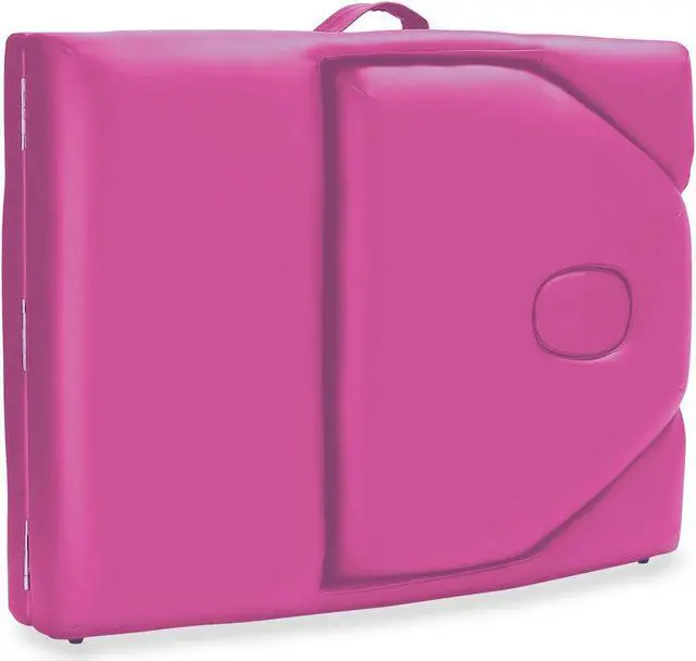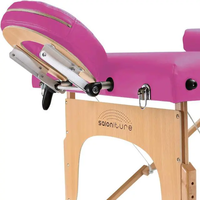 This Saloniture portable massage table combines luxurious comfort in a convenient, fold-and-carry design ideal for both certified massage therapists as well as at-home bodywork enthusiasts. The table features professional-grade craftsmanship, including a sturdy hardwood frame along with double tension knobs on each leg for extra stability. Its support cables are composed of the same heavy-duty steel used in automobile brake construction, providing solid support for up to 450 pounds. Ultra-padded with a deluxe high-density foam that provides ample support while contouring to the body, the table provides luxurious comfort for the client.